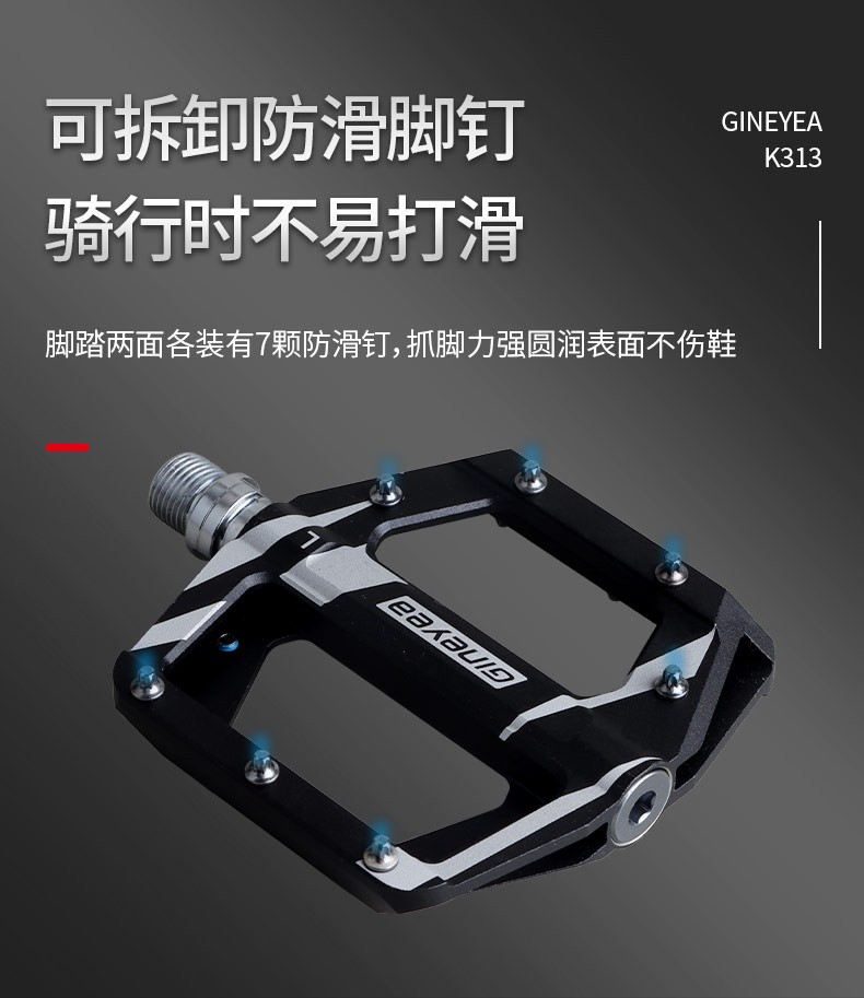 Gineyea碳纖維腳踏自行車公路車山地車防滑釘踩面鈦合金軸腳踏