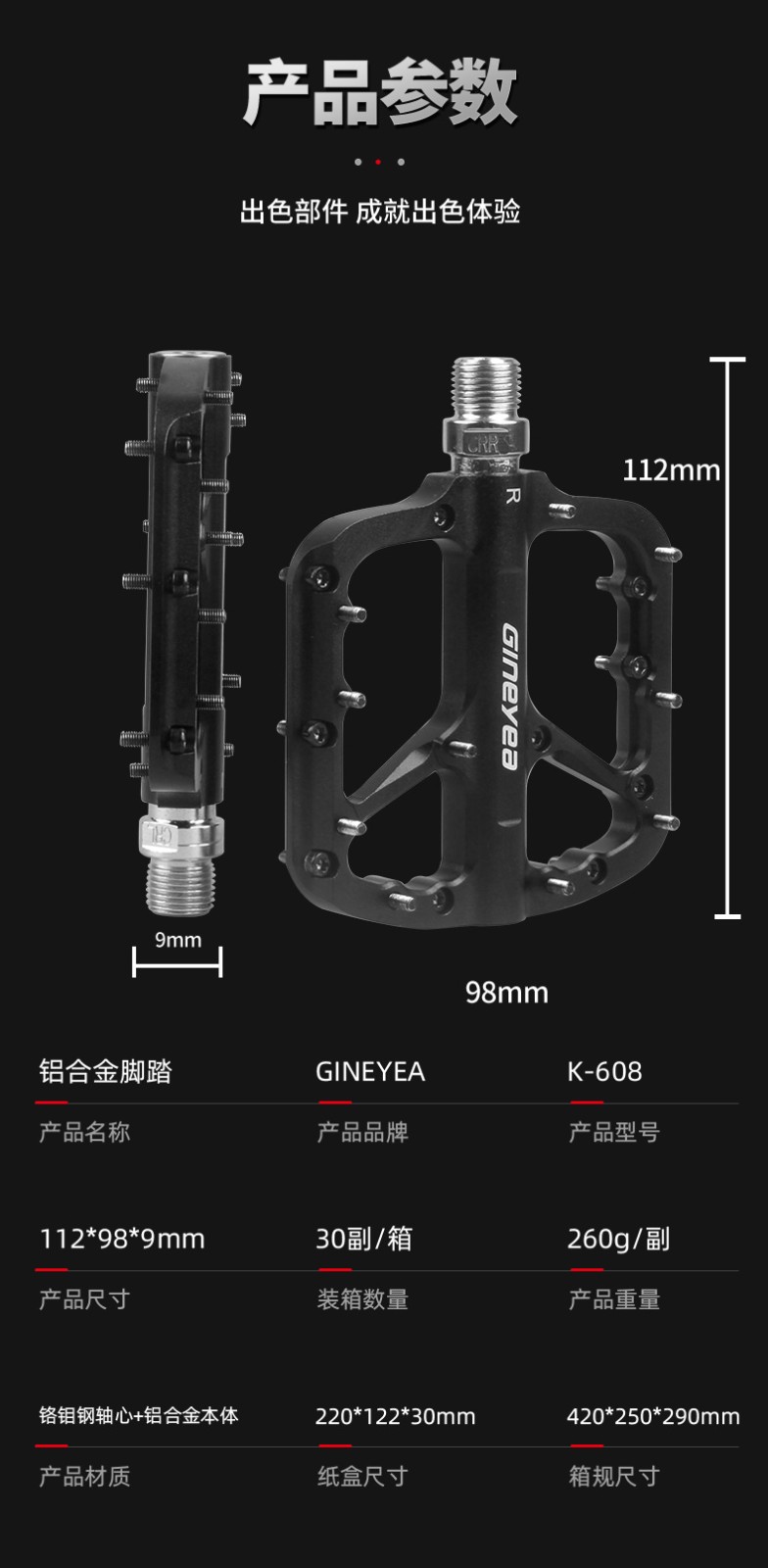 GINEYEA 山地自行車腳踏培林大寬防滑XC越野腳踏板腳蹬騎行配件