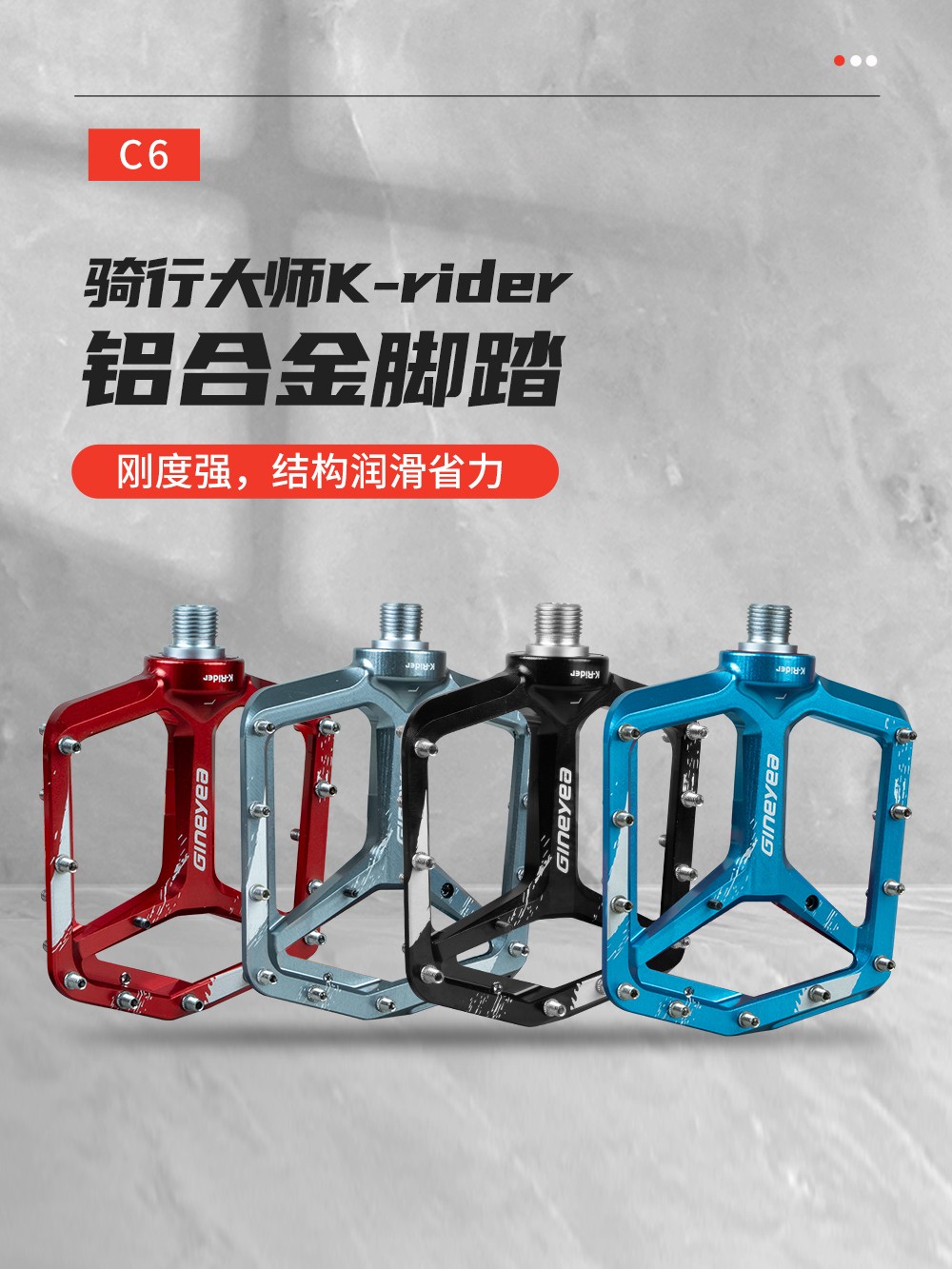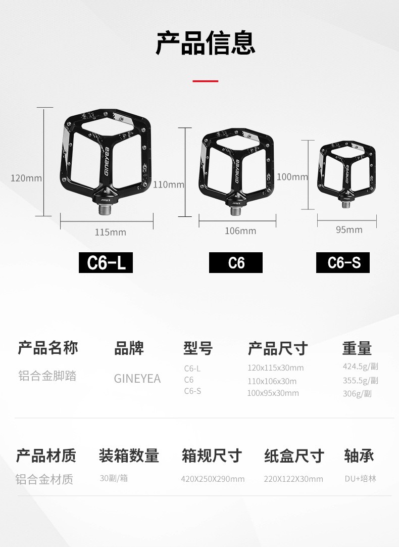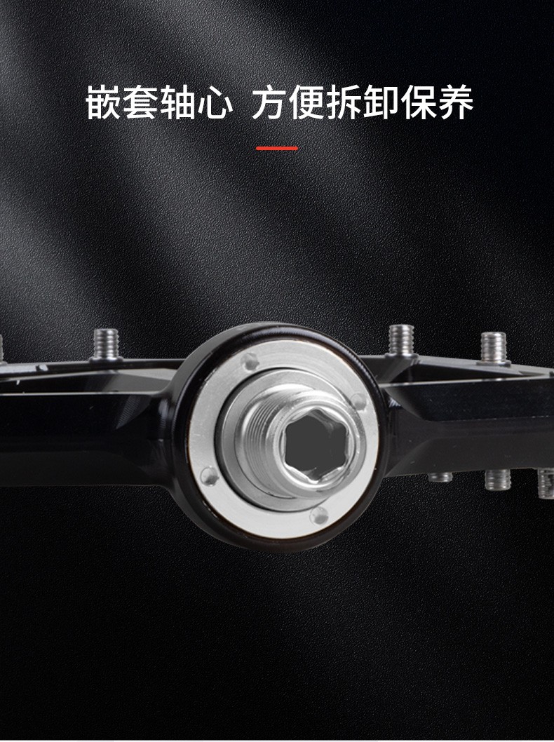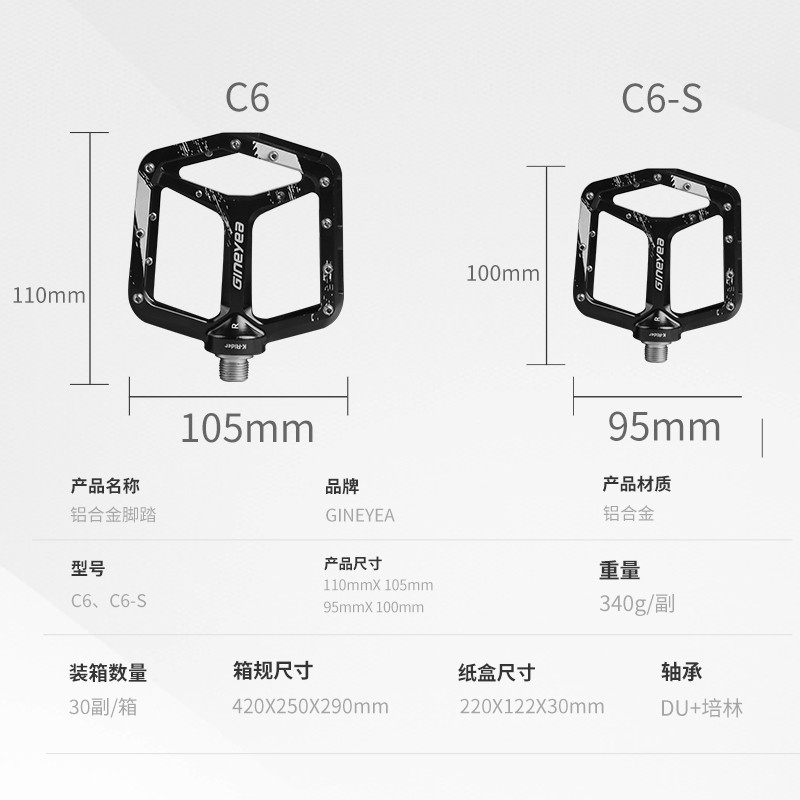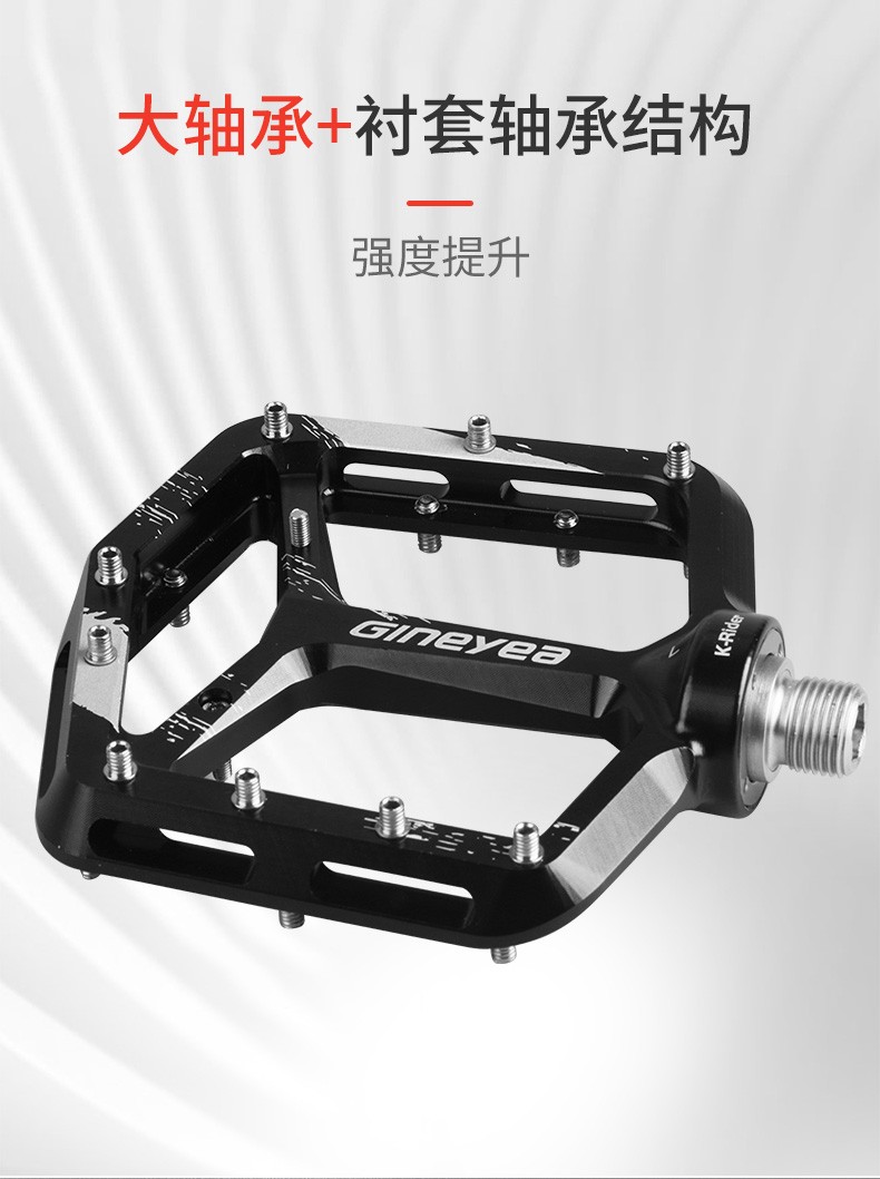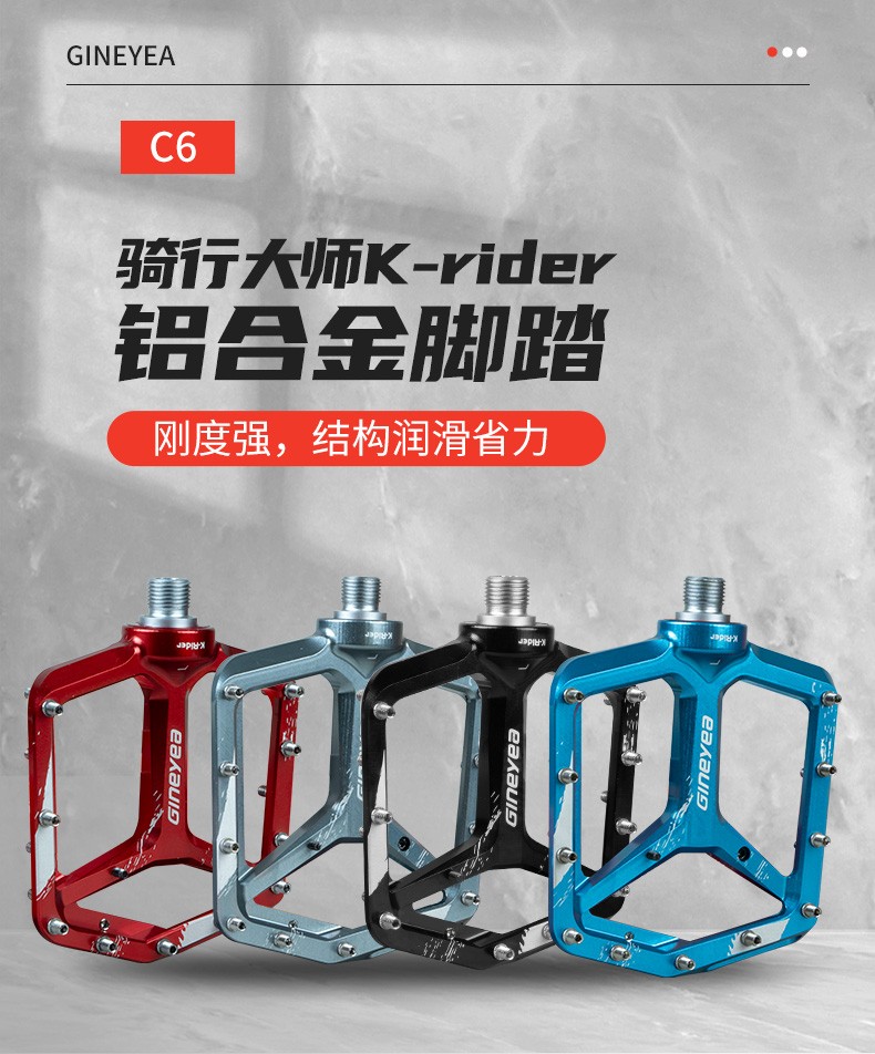 景曄新款C6系列外觀設(shè)計比較個性化,造型設(shè)計相同,采用嵌套軸心的一個設(shè)計,所有邊角尖銳凸起除都經(jīng)過細(xì)致打磨,鋁合金CNC本體,珞鉬鋼軸心,騎行更省力,采用大軸承+襯套的一個設(shè)計,尺寸分大中小,大號用于速降,中號用于CX,林道,泵道,小號用于童車