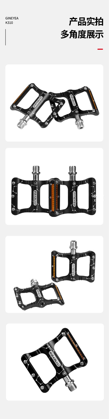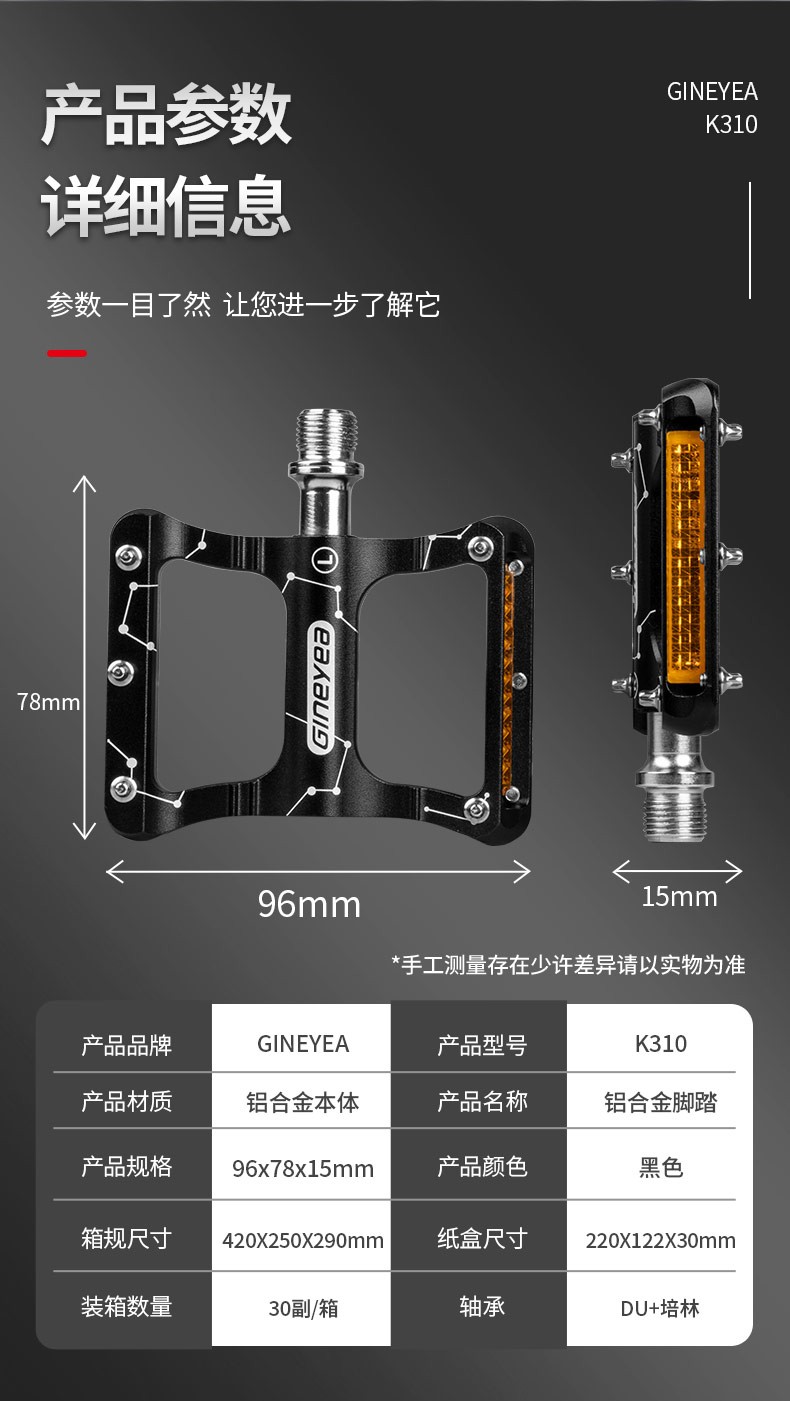 產(chǎn)品描述:名稱:CNC鋁合金腳踏材質(zhì):鋁合金表面處理:陽極軸心:鉻鉬鋼產(chǎn)品顏色:黑色重量:360g(一對)軸承:培林+DU口徑:9/16通用螺紋適用車型:城市車,休閑車,公路車,折疊車
