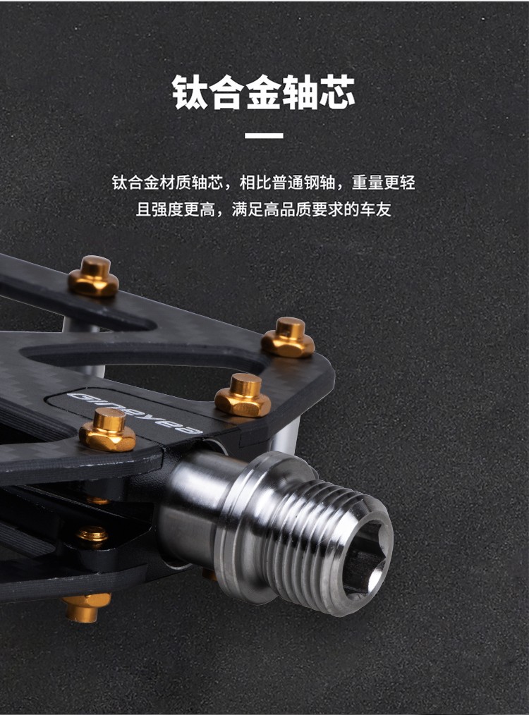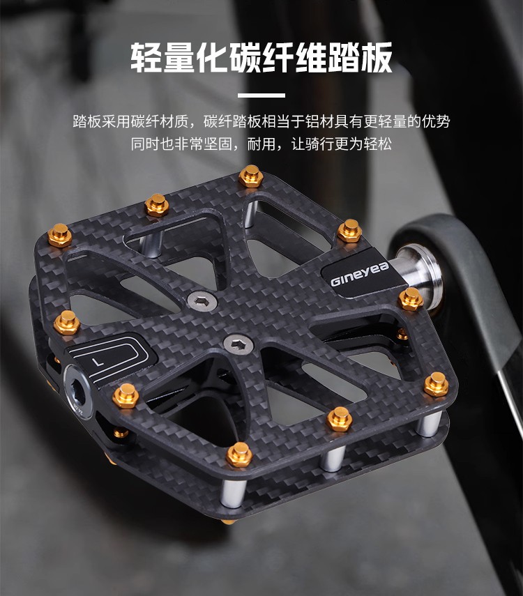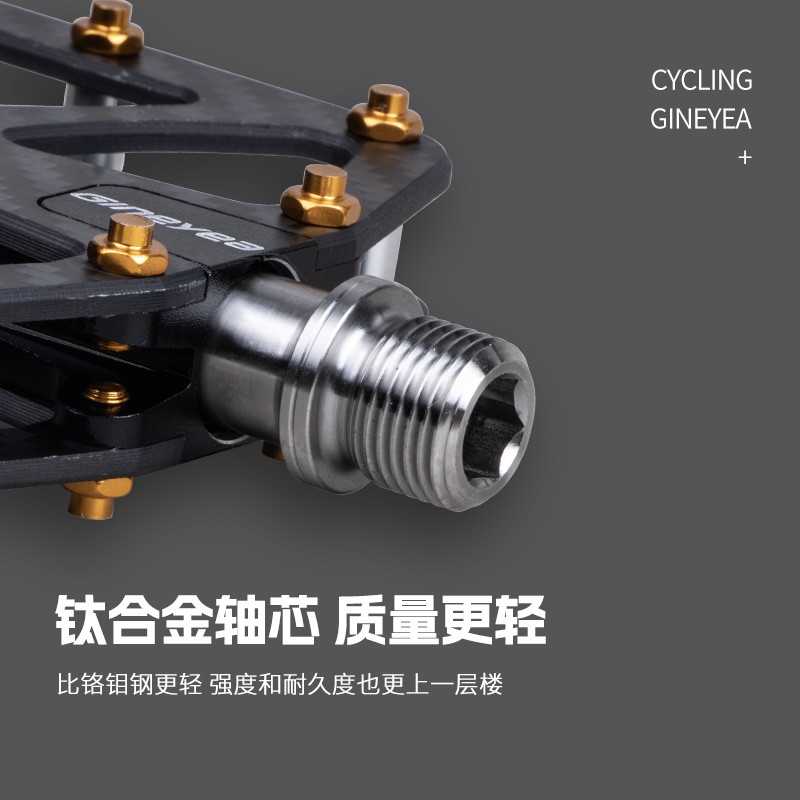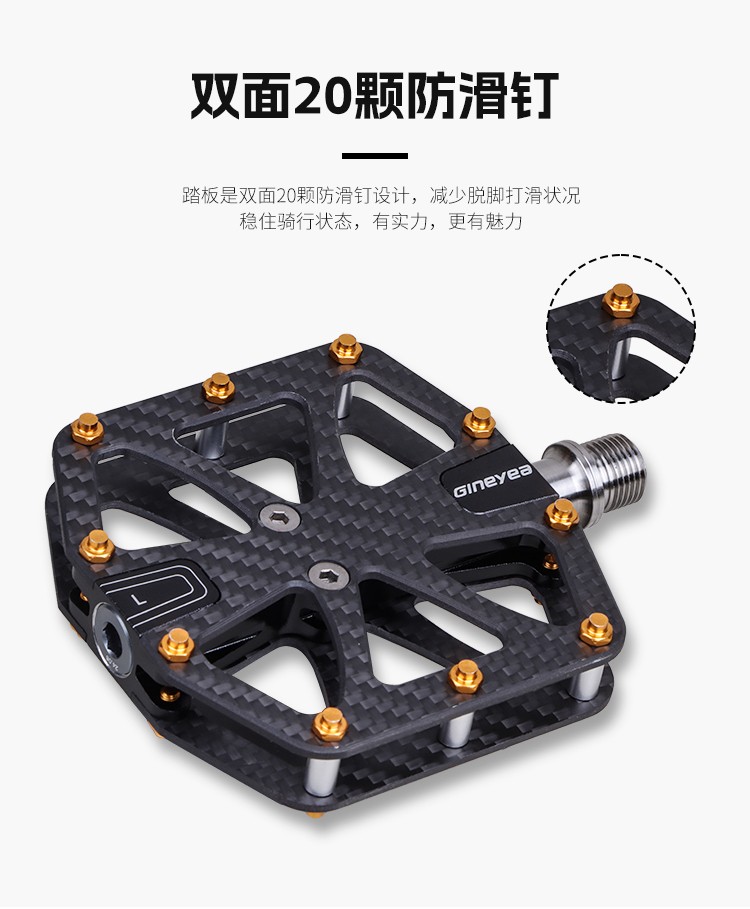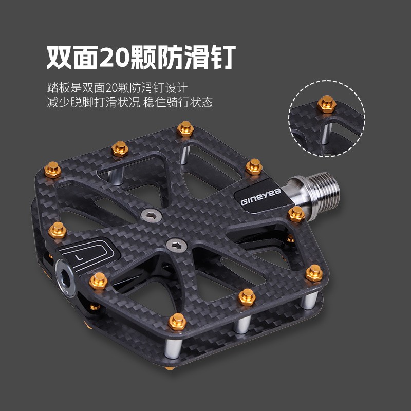 Gineyea碳纖維腳踏自行車(chē)公路車(chē)山地車(chē)防滑釘踩面鈦合金軸腳踏