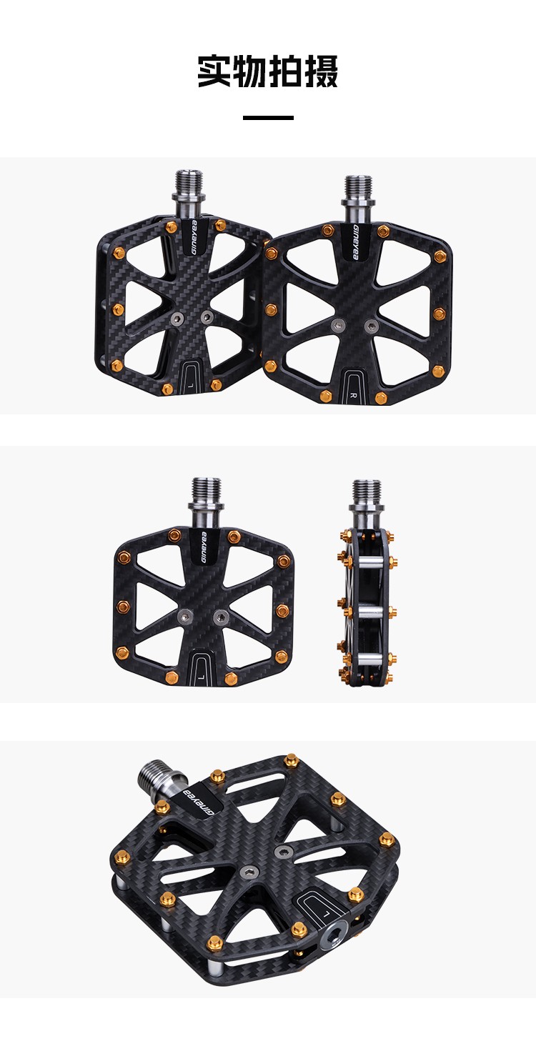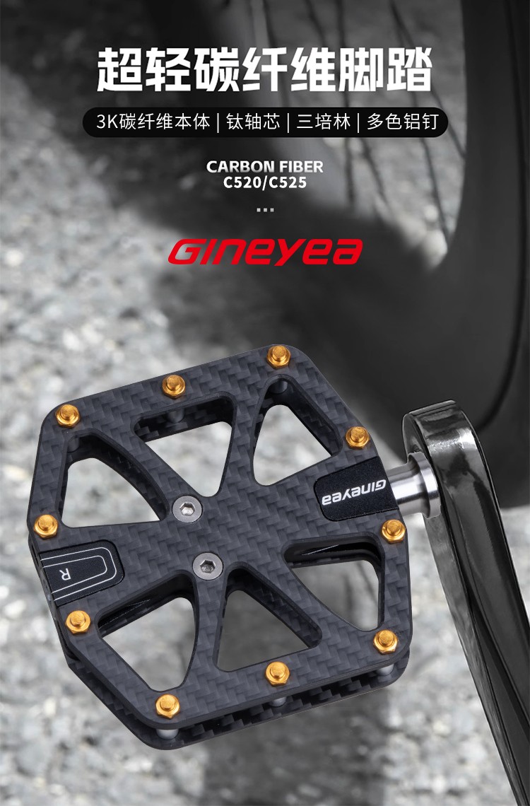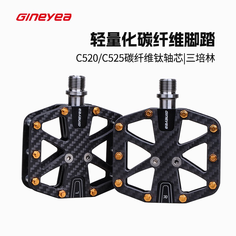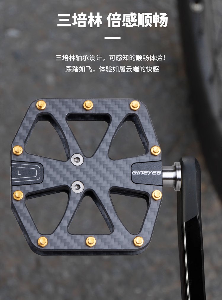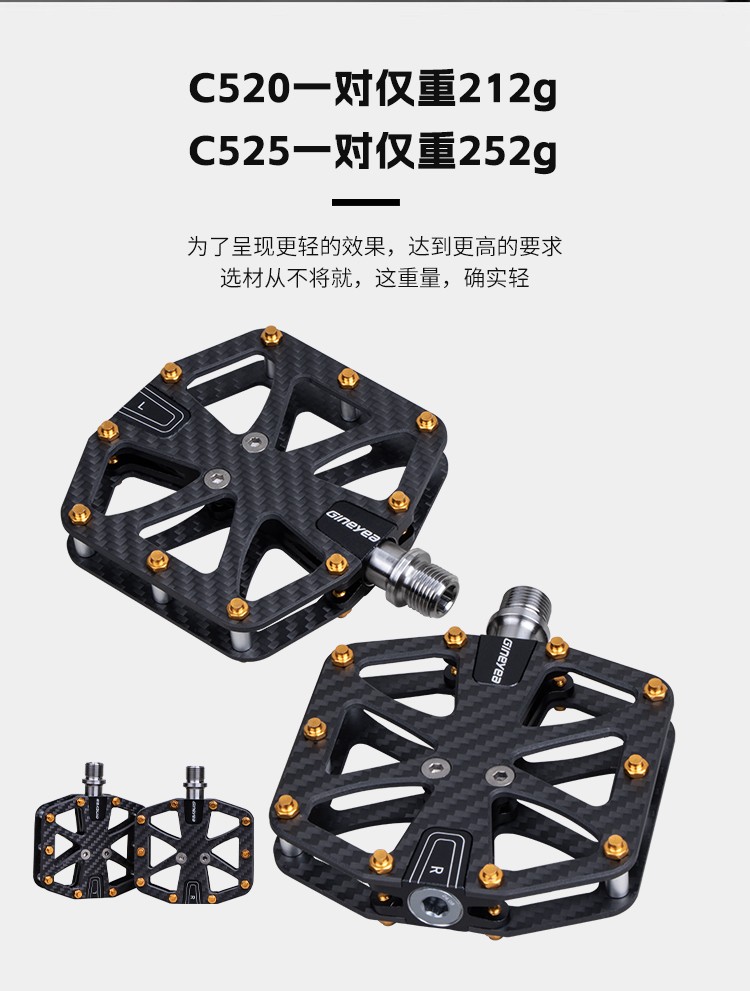 Gineyea碳纖維腳踏自行車(chē)公路車(chē)山地車(chē)防滑釘踩面鈦合金軸腳踏