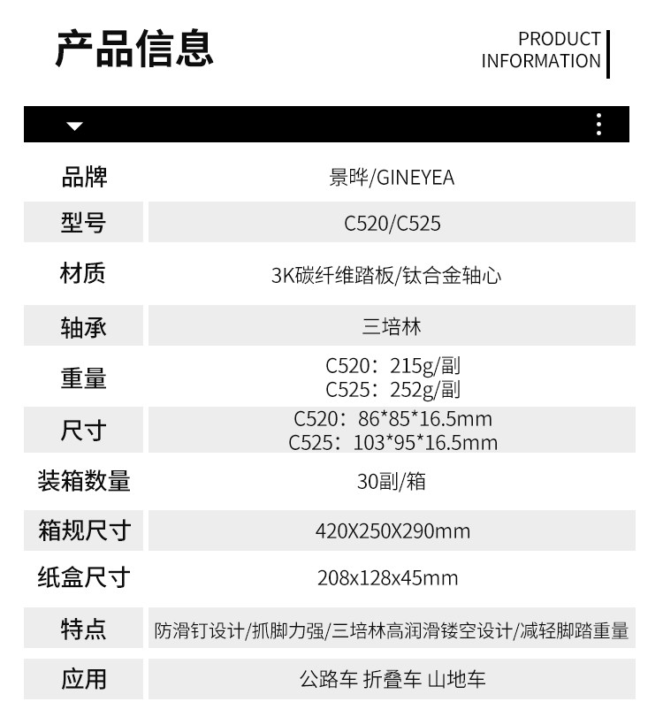景曄碳纖維腳踏公路山地自行車(chē)鈦合金超輕8培林防滑腳踏
