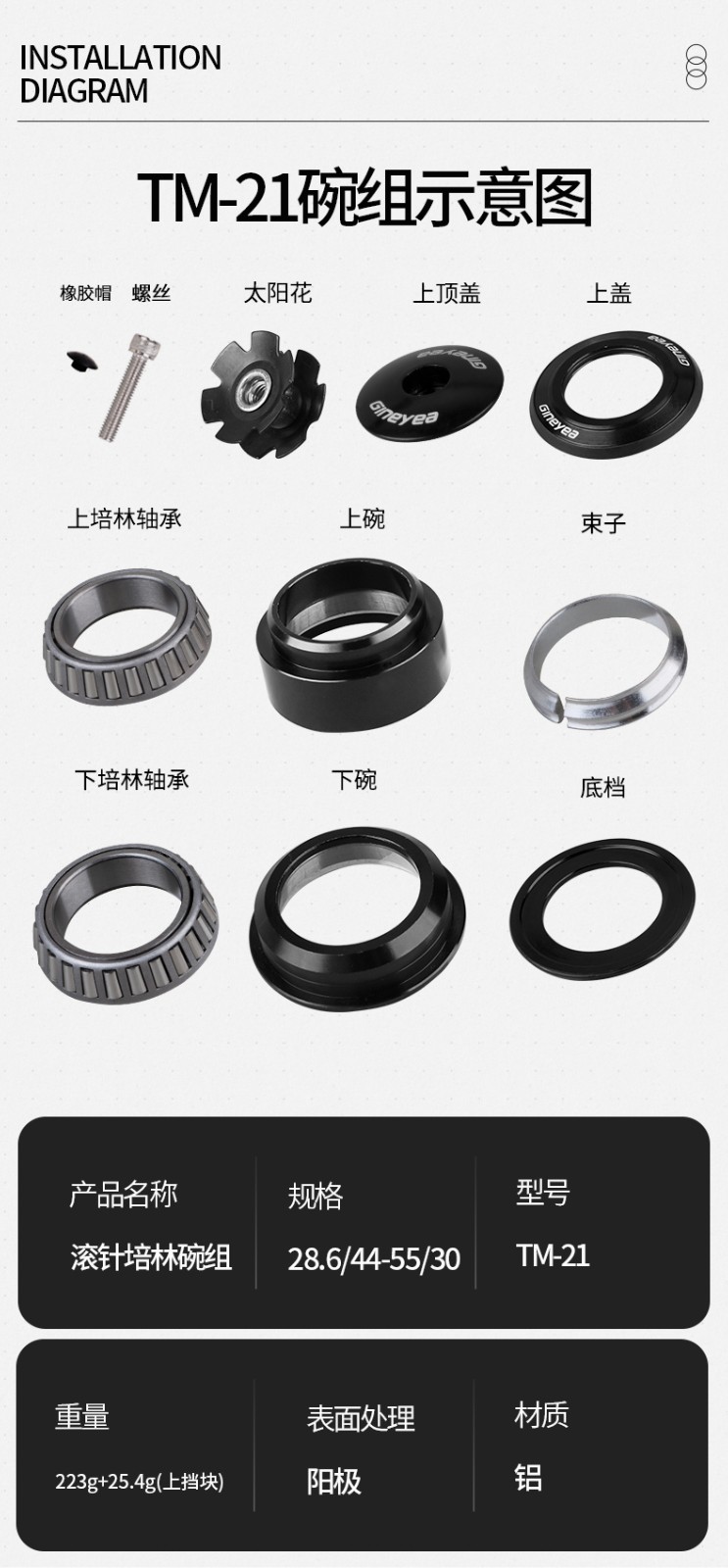 景曄自行車前叉碗組山地車雙培林軸承車頭腕組直管44-44mm