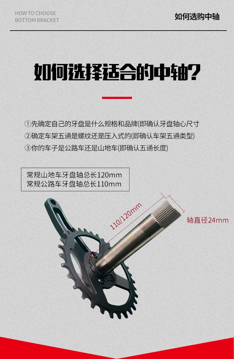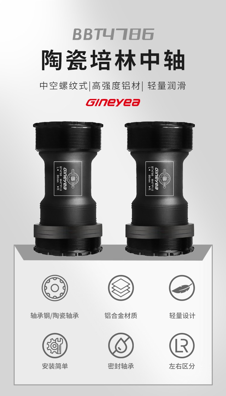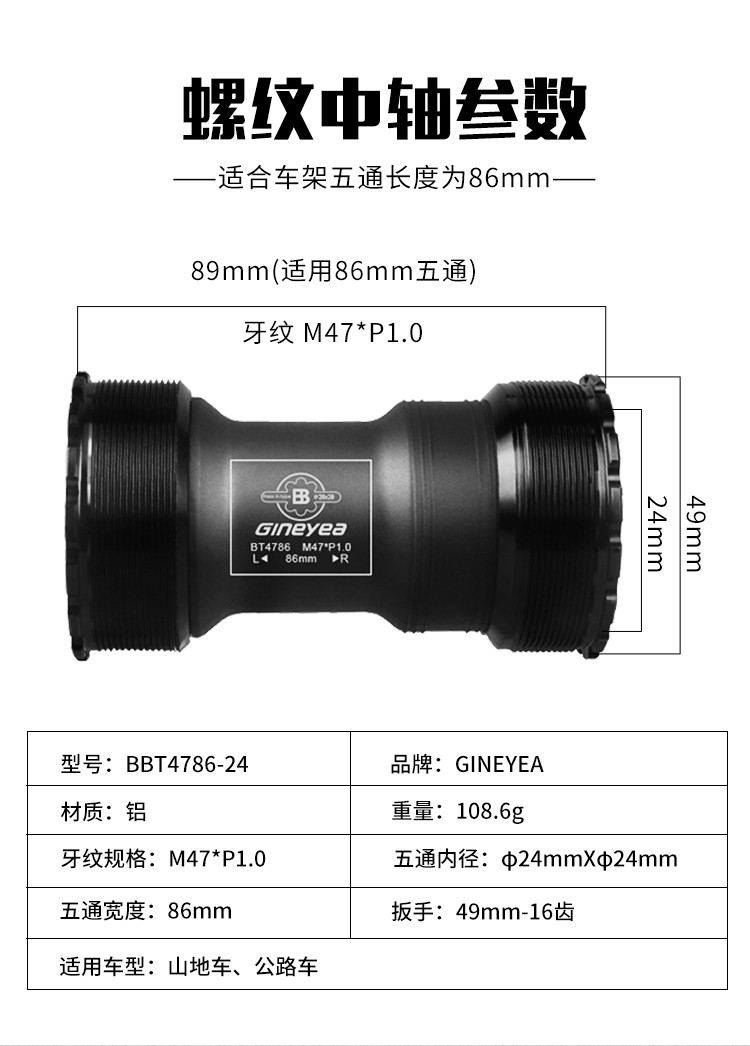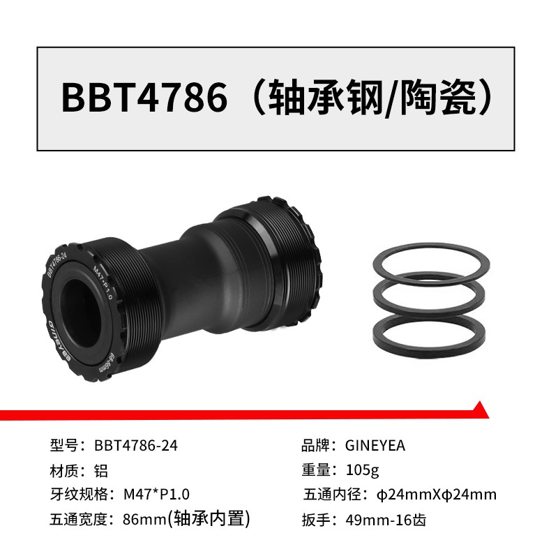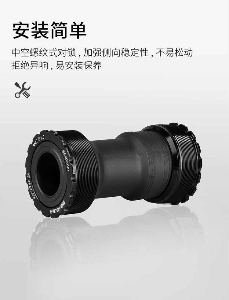 景曄t47中軸內(nèi)徑24mmBB螺紋培林密封中軸中空一體牙盤旋入式中軸