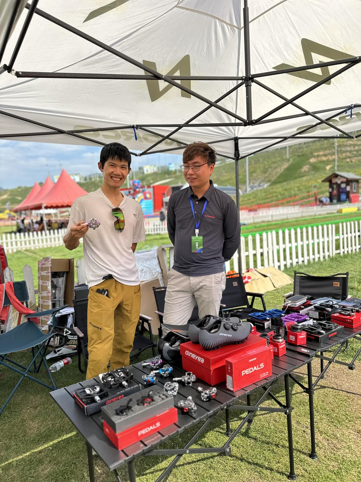 景曄團(tuán)隊(duì)很榮幸到達(dá)張家口為期五天的2023富龍山地車嘉年華比賽中,我們備受矚目的景曄自行車零配件品牌綻放光彩。作為一個(gè)成立將近20年的老品牌,展位上,無數(shù)熱情的車友們紛紛駐足,盡情試騎我們的山地腳踏,同時(shí)也積極與我們咨詢交流。景曄的腳踏和碗組在活動(dòng)現(xiàn)場(chǎng)出鏡率極高,尤其是紫色的M996以其獨(dú)特的配色得到了車友們的認(rèn)可。