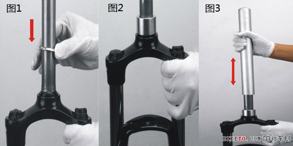 1.1 拿一裝下檔工具底座,套入裝有下檔的前叉上,如圖2。