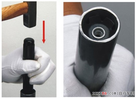 3.裝上下碗,根據(jù)各個(gè)廠家生產(chǎn)的車架頭管和公差可能會(huì)有偏差,在裝入上下碗的時(shí)候也有松緊,大部分都是需要用裝碗工具   ,如圖1。