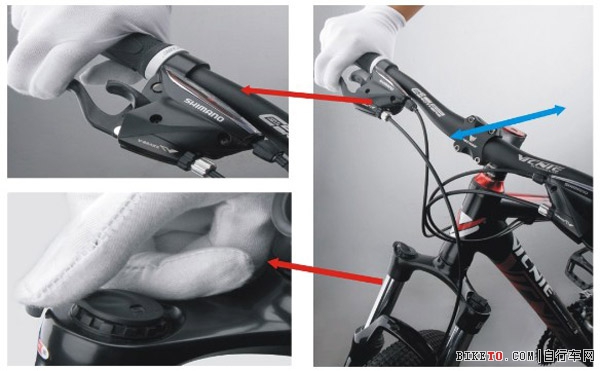 2.右手握緊前剎前后推動(dòng),感覺車頭: