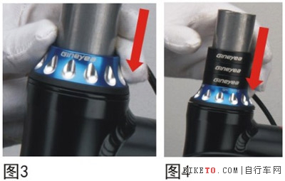 3.1 先把上碗放穿入碗組工具,注意碗的方向,上碗碗口向上,然后再穿入車架頭管內(nèi),如圖2、圖3、圖4。