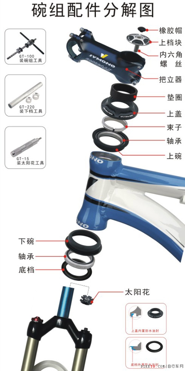 3.裝上下碗,根據(jù)各個(gè)廠家生產(chǎn)的車架頭管和公差可能會(huì)有偏差,在裝入上下碗的時(shí)候也有松緊,大部分都是需要用裝碗工具   ,如圖1。