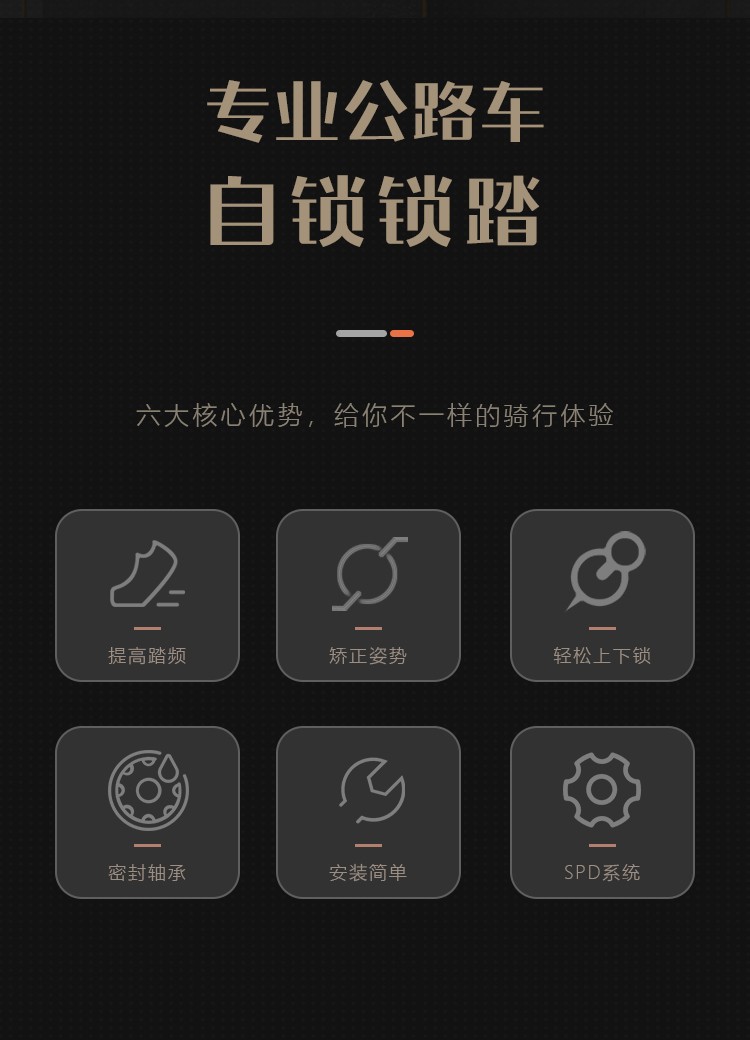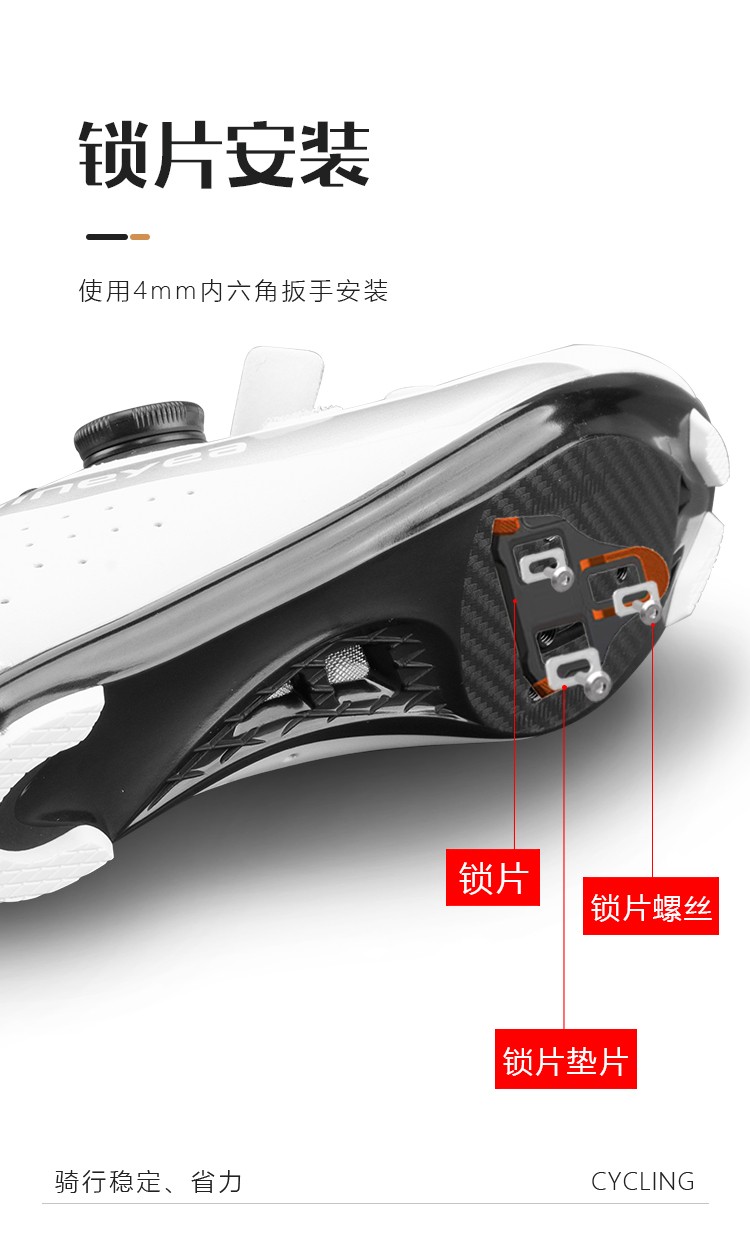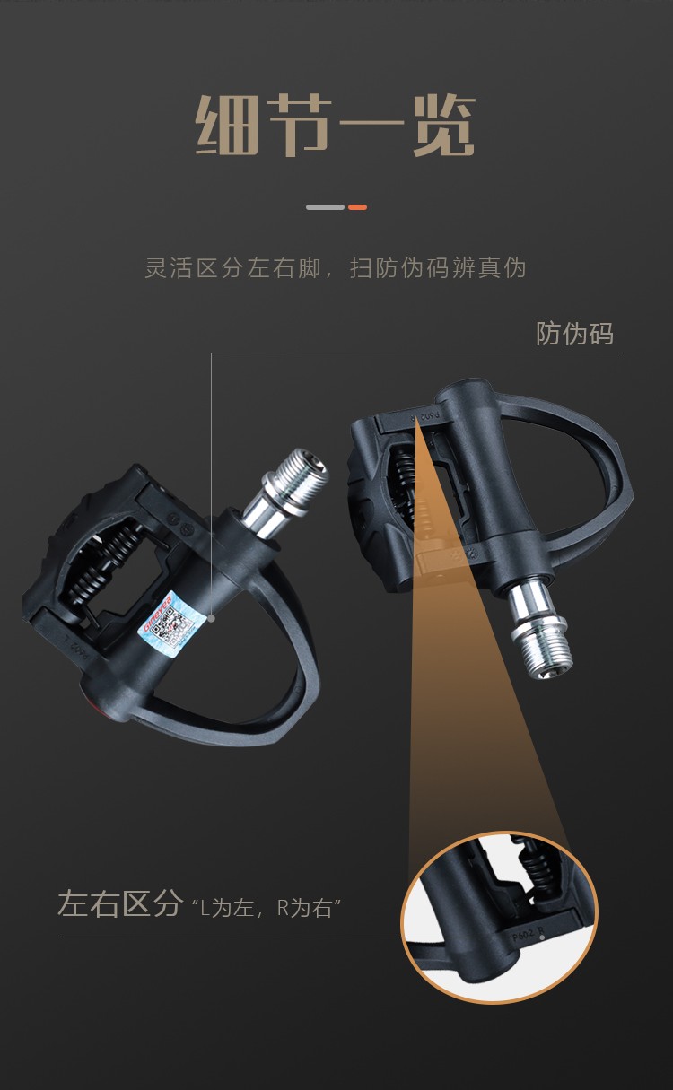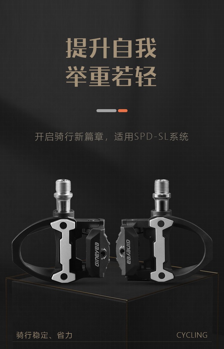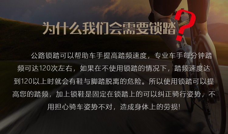 #公路車專業(yè)自鎖鎖踏,適用SPD-SL系統(tǒng),自帶鎖片體驗(yàn)不一樣的騎行速度、穩(wěn)定、省力,踏板流線型一體化設(shè)計(jì),高強(qiáng)度質(zhì)量輕的尼龍材料加持,一對鎖踏僅重約278g,鎖片重量約88g,松緊度可調(diào)節(jié)的張力設(shè)置,靈活度更高,統(tǒng)一螺紋口徑14mm。