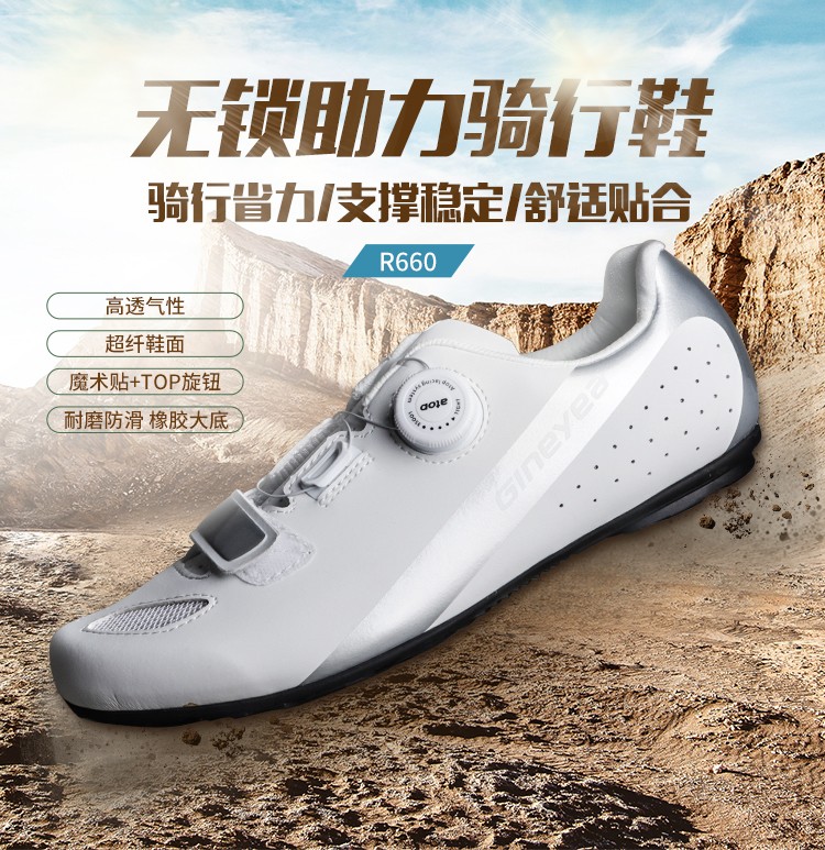Gineyea新款透氣炭纖維山地車(chē)鎖鞋無(wú)鎖騎行鞋山地自行車(chē)男女鎖鞋